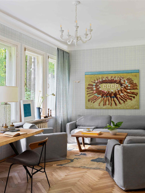 Anna Zinkovskaya ha progettato una casa nel distretto di Mosca, dove lei e la sua famiglia si sono trasferiti durante la quarantena, e alla fine hanno deciso di rimanere lì per molto più tempo. Nell'antico villaggio di Uspenskoe sull'autostrada Rublevo-Uspenskoe vivevano i Morozov e nella prima metà del XX secolo iniziarono a costruire dacie per funzionari statali; i conti Apraksins, Cechov, Levitan e Gorkij. Gli edifici principali furono costruiti nel periodo prebellico, purtroppo oggi sono sopravvissute solo una quindicina di queste case, le restanti sono state demolite. La designer Anna Zinkovskaya ha affittato una di queste a Uspenskoe per aspettare la pandemia, ma l'intera famiglia ha amato così tanto la dacia che l'affitto le è stato prorogato per diversi anni.